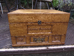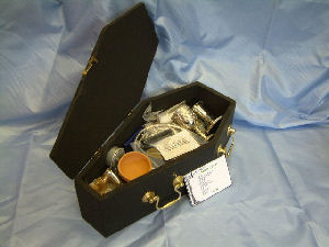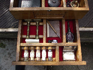 Stained and Varnished Oak Vampire (and werewolf) Slaying Kit (replica) made from recycled wood and is fully lined in red velour, contains a mixture of new and vintage replica items as shown in the 3 pictures. "Please note this is for entertainment purposes only" £450.00 collection only from Sheffield as this item is large and very heavy. |